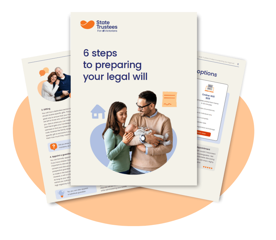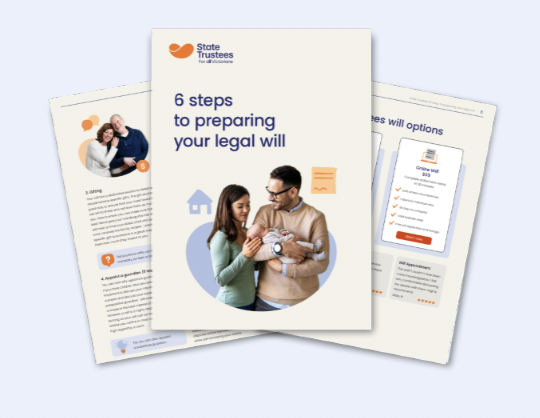 State Trustees has prepared a free Will Writing guide to make the process as streamlined and simple as possible. So, if you’re a Victorian over the age of 18, we encourage you to download this invaluable resource. Whether you plan to use our experienced Will Writing professionals or prefer our convenient DIY online wills service, this guide will help you get off to the best start.
